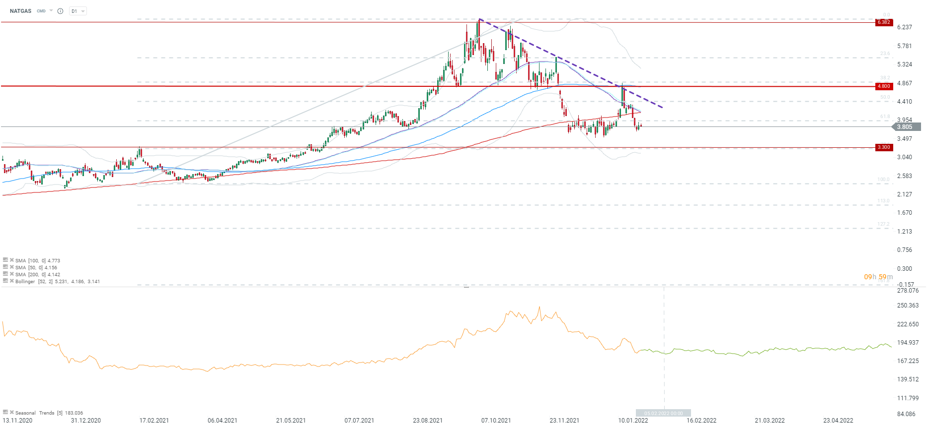 NATGAS - US gas prices remain under pressure, although it is worth noting that last year on Jan. 22 the price hit a local low, after which prices rose more than 30% due to low temperatures. Source: xStation5