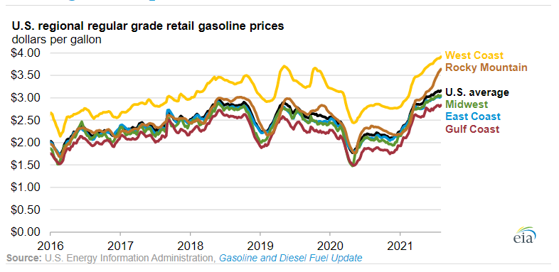 Demand for oil in the United States remains strong. Prices in some regions start to approach $4 per gallon. In the past prices above $4per gallon were reached only when oil price was above $90 per barrel