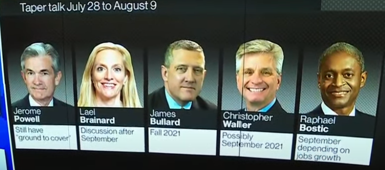 Comments from US central bankers. Most of them expect fast normalization but Powell remains unconvinced. Source: BloombergTV