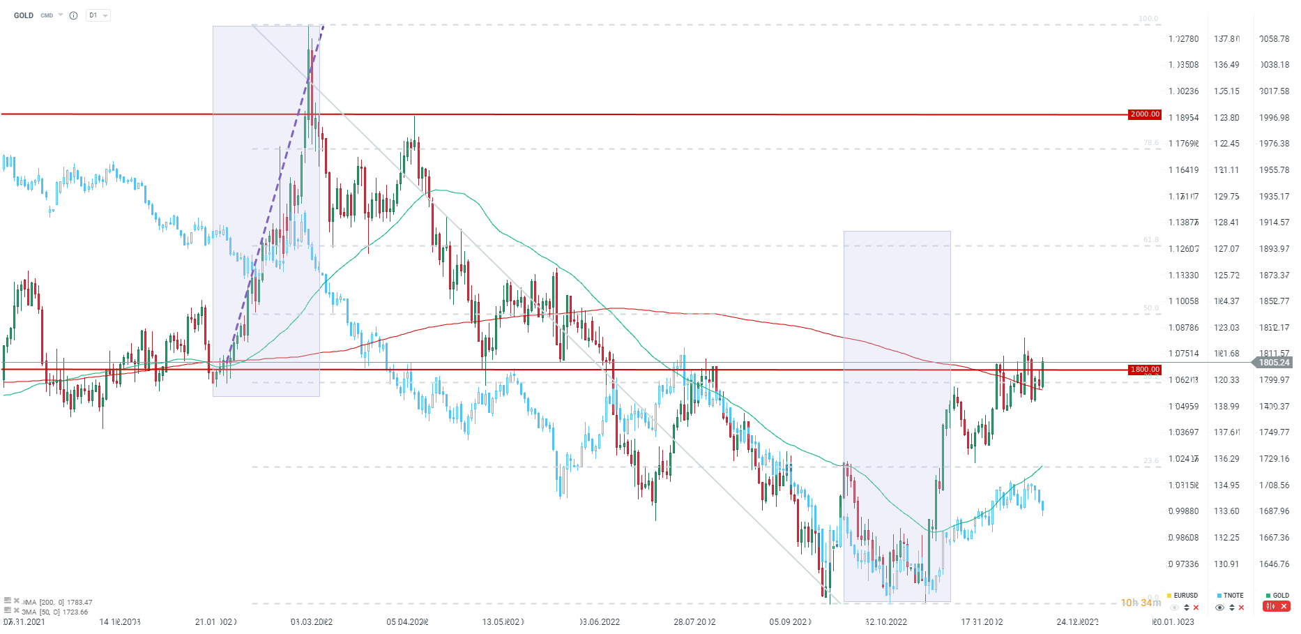 Gold has been quite resilient in the wake of recent pick-up in yields and attempts to hold above $1,800 per ounce. Source: xStation5