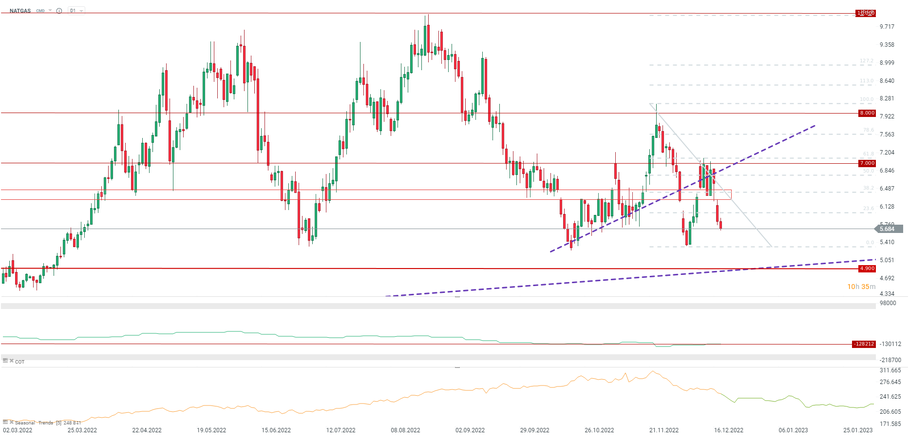 NATGAS price has already fallen by about 20% from the recent local highs of USD 7/MMBTU, while taking into account this year's highs, declines reached 40%. However, it cannot be ruled out that before the end of the year, US gas may fall to the lowest levels since March. Source: xStation5