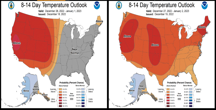 Gas prices in the US are falling significantly due to warmer weather forecasts. Temperatures across the United States are expected to remain above average for the next 8-14 days. Source: Bloomberg