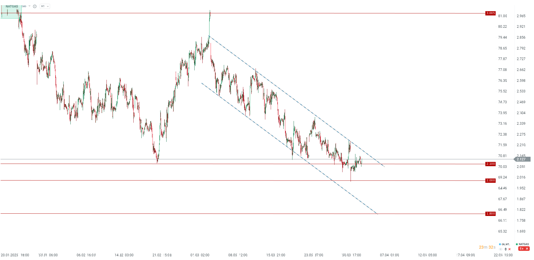 The price clearly rebounded from around $2.0 MMBTU, but is still moving inside the downtrend channel looking at H1 interval. Source: xStation5