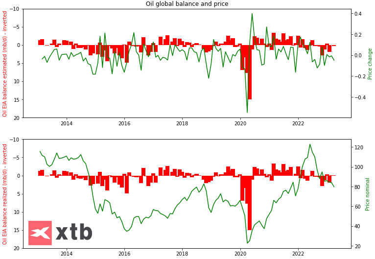 Currently the balance of the oil market shows a slight oversupply, which may, however, turn into a small deficit. Source: Bloomberg, XTB