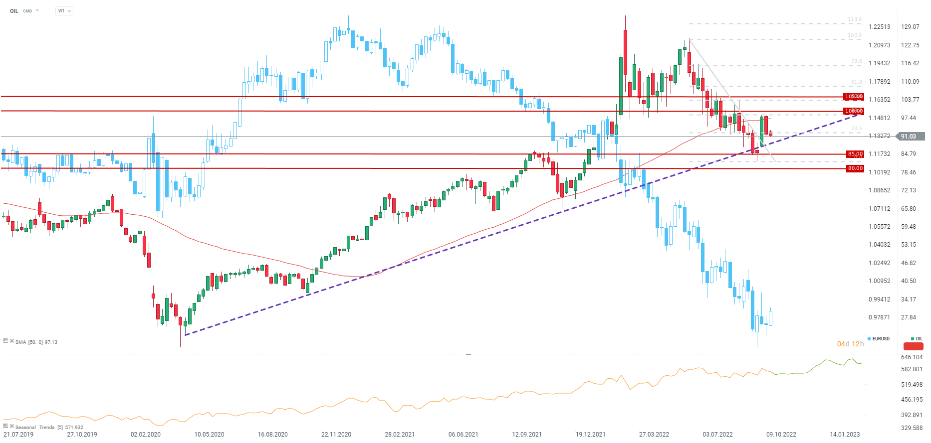 $90-92 per barrel area is a key to maintaining a potential bullish trend reversal. Source: xStation5