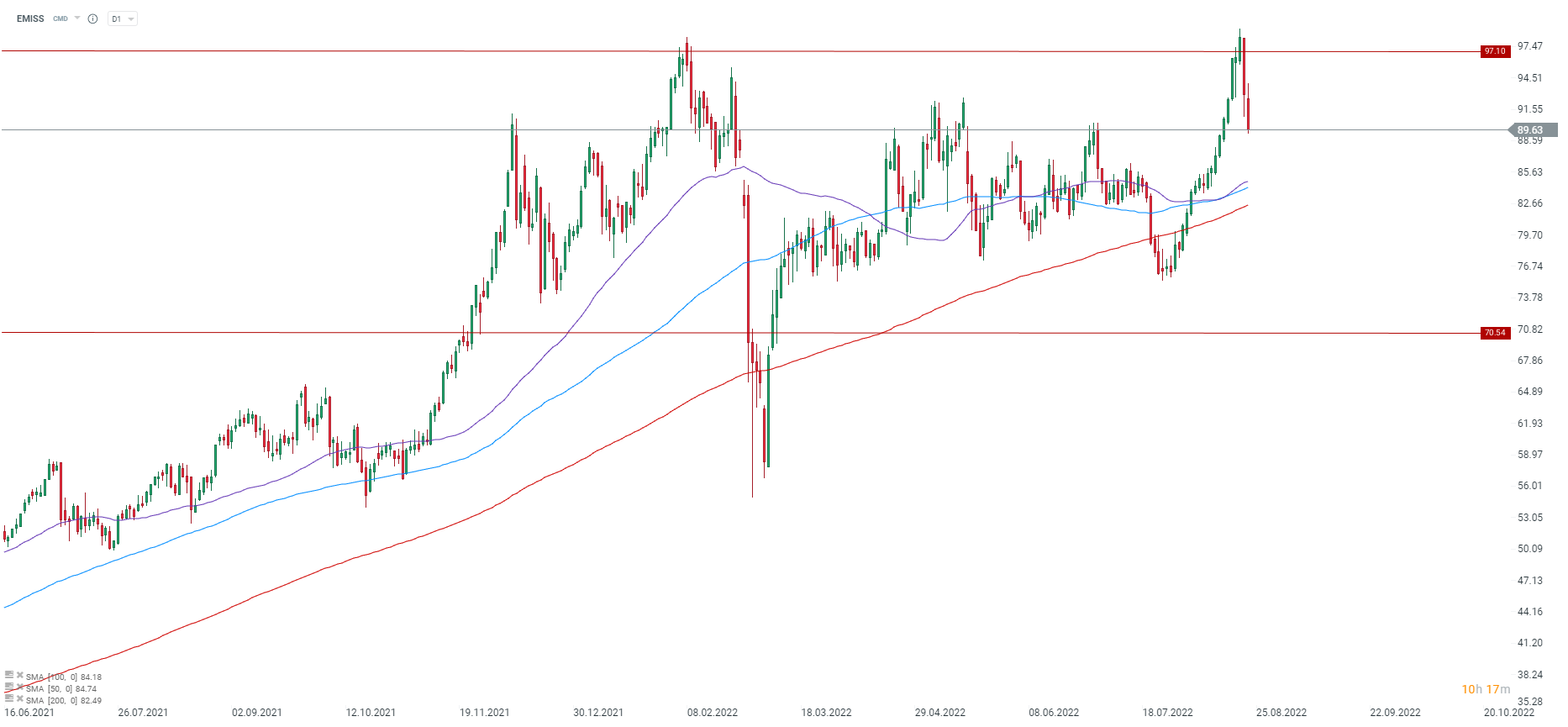 EMISS prices saw a sharp reversal and a drop towards €80-85 area cannot be ruled out. Source: xStation5