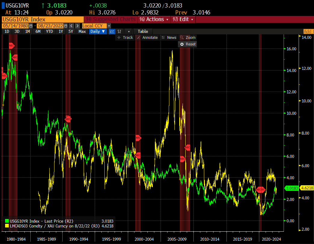 Copper-to-gold price ratio seems to be in-line with current levels of US yields