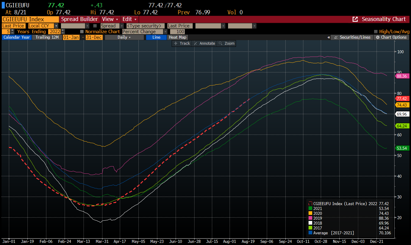 In theory, a some kind of stabilization may arrive in September but seasonal patterns hint that upward move should resume in December, when heating period starts and supply of emission contracts will once again be limited