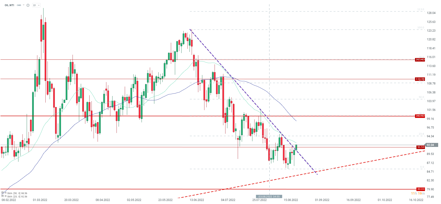 Oil prices bounced around 8% off the recent low. An attempt of breaking above a mid-term downward trendline can be spotted but price is yet to paint a higher high and a higher low. Source: xStation5