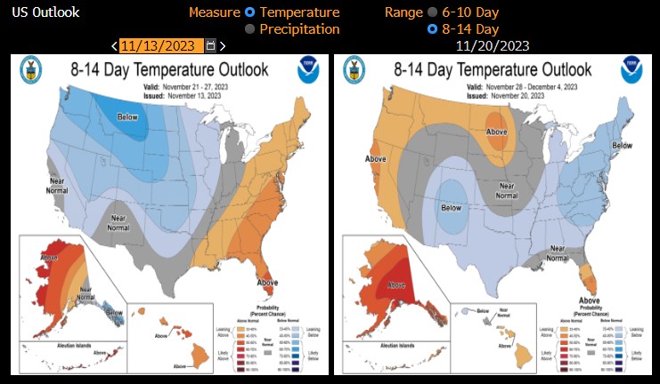 - The weather in the US is generally favorable – temperatures are expected to drop, but they won't be extremely cold, providing a chance that the "seasonal" peak for this year is already behind us. Of course, there's always the possibility of rallies in response to significant temperature drops in January and February