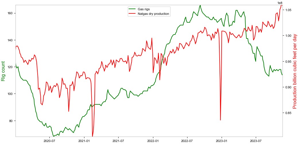 - Natural gas production in the USA remains at a very high level, even with a decline in drilling rigs