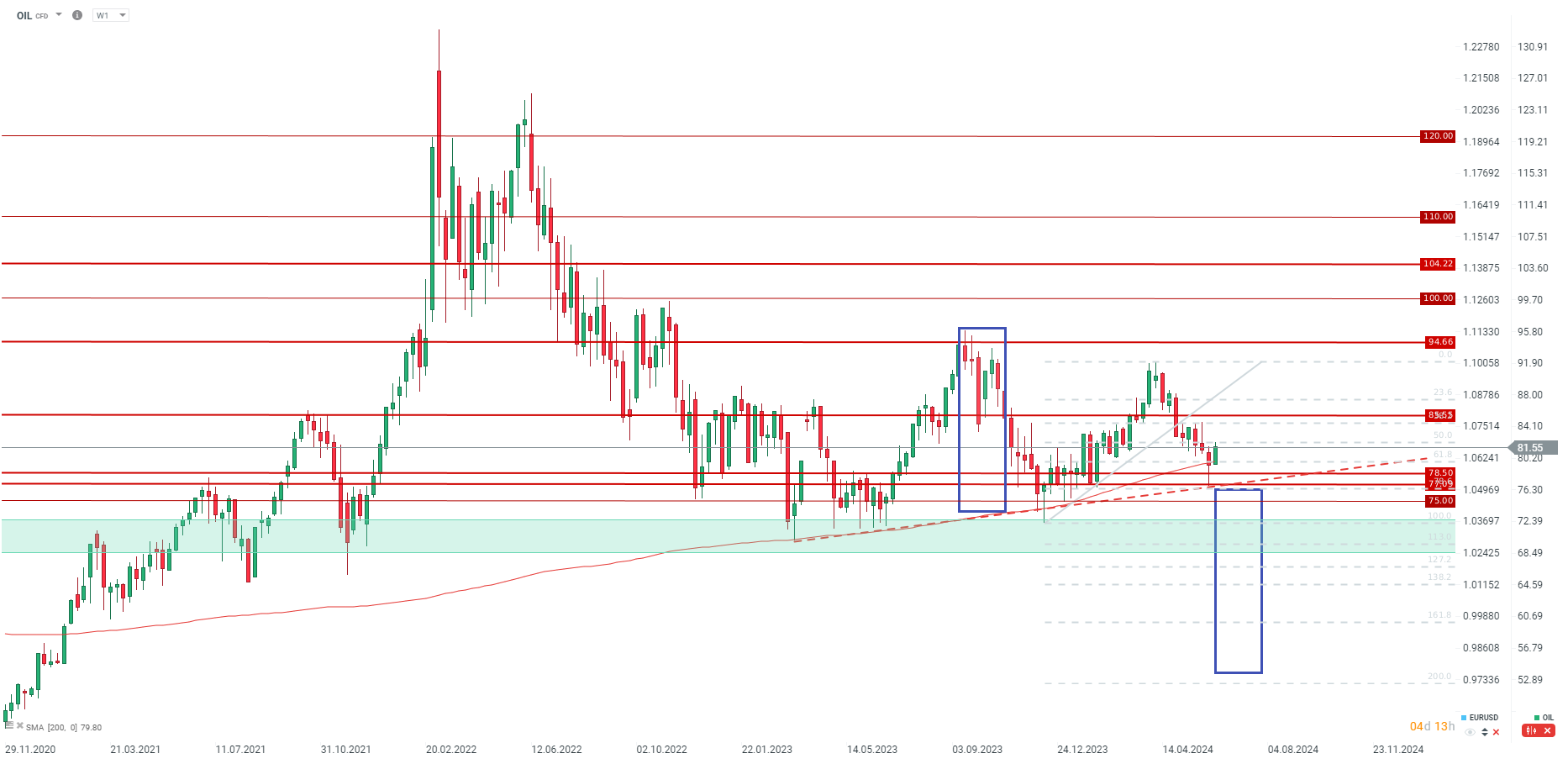 - However, it is worth noting that since the end of 2022, oil has remained in a fairly wide consolidation of over $20