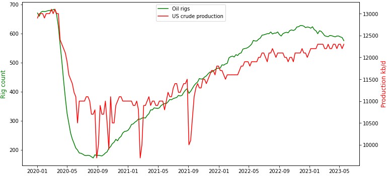 Drilling rigs in the United States continue to decline, suggesting that production consolidation in the U.S. may persist in the near future.
