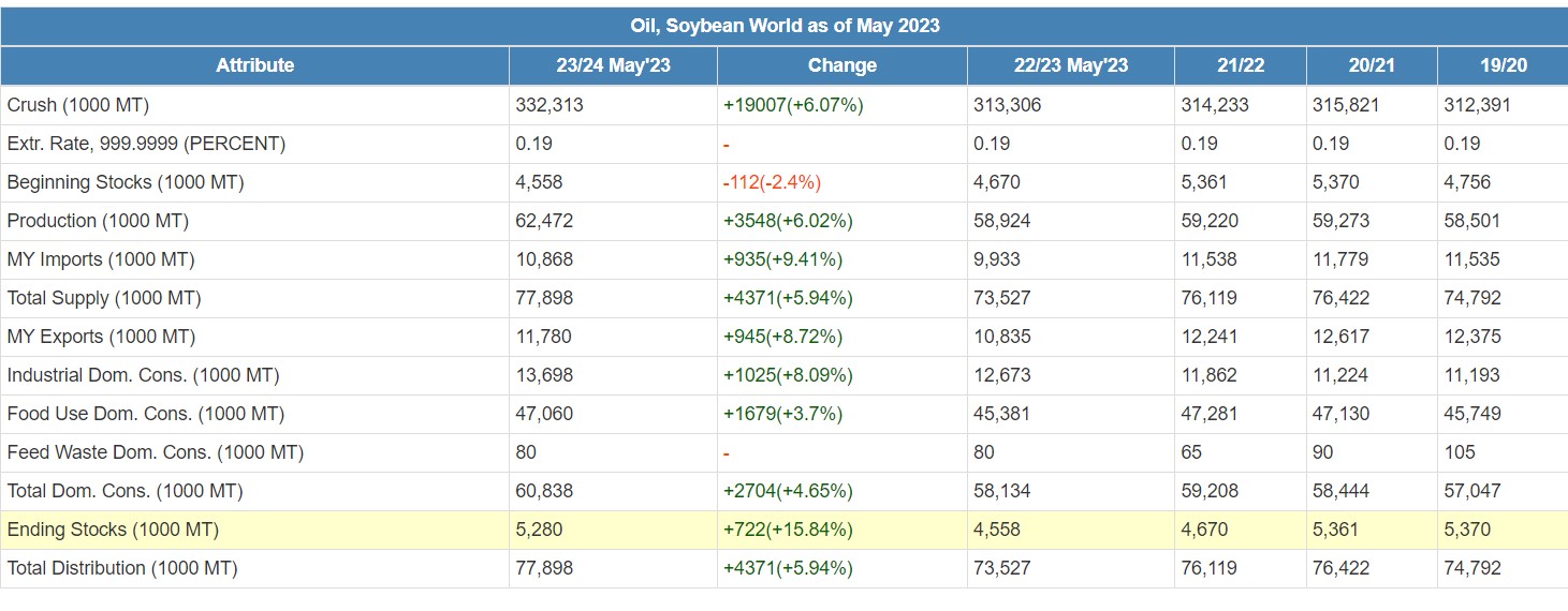 The May WASDE report showed a significant increase in ending stocks, mainly due to China, where imports and production were excessive compared to the growth in demand. Nevertheless, China leads in global soybean consumption growth.