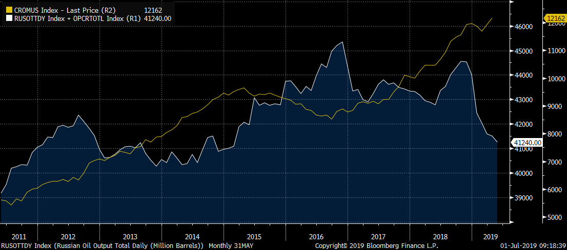 - Extending the output cut agreement does not mean that the production cannot rise as Saudi Arabia was delivering deeper than agreed cuts earlier and declines in the Russian output were result of problems with pipelines