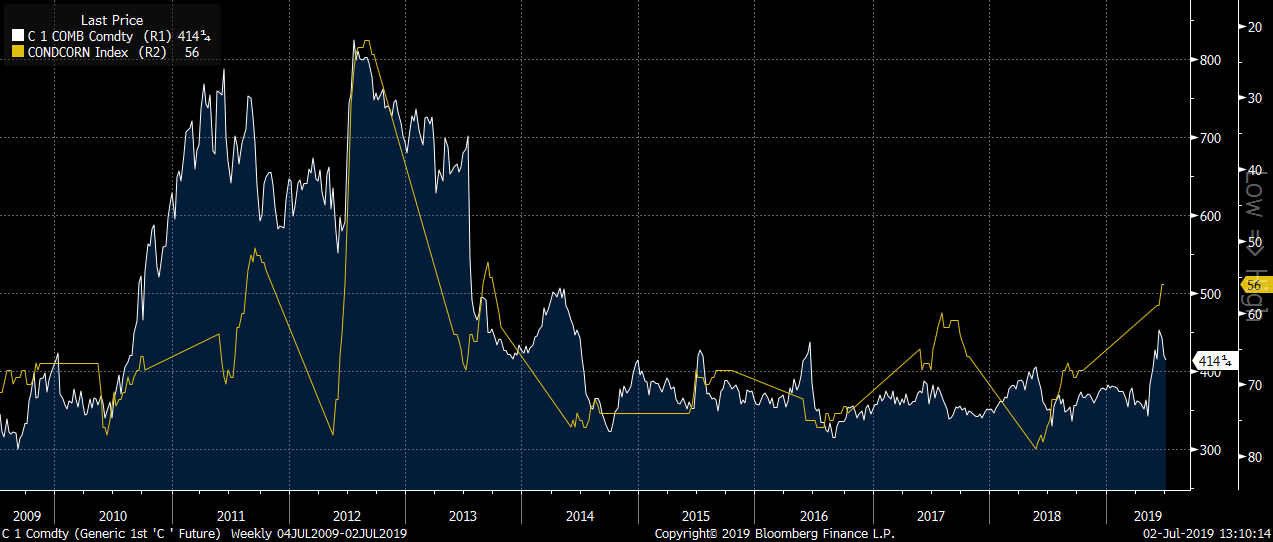 - Quality of corn crop at the lowest level in many years