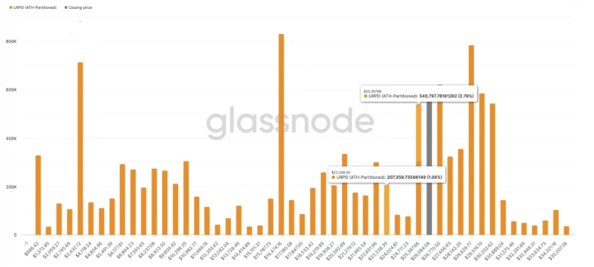 Relatively few bitcoin trades were made at prices in the $26,000 to $24,000 range. A kind of gap of interest among traders/traders indicates that support at the lower levels, 61.8 Fibo retracement, seems more natural. Source: Glassnode
