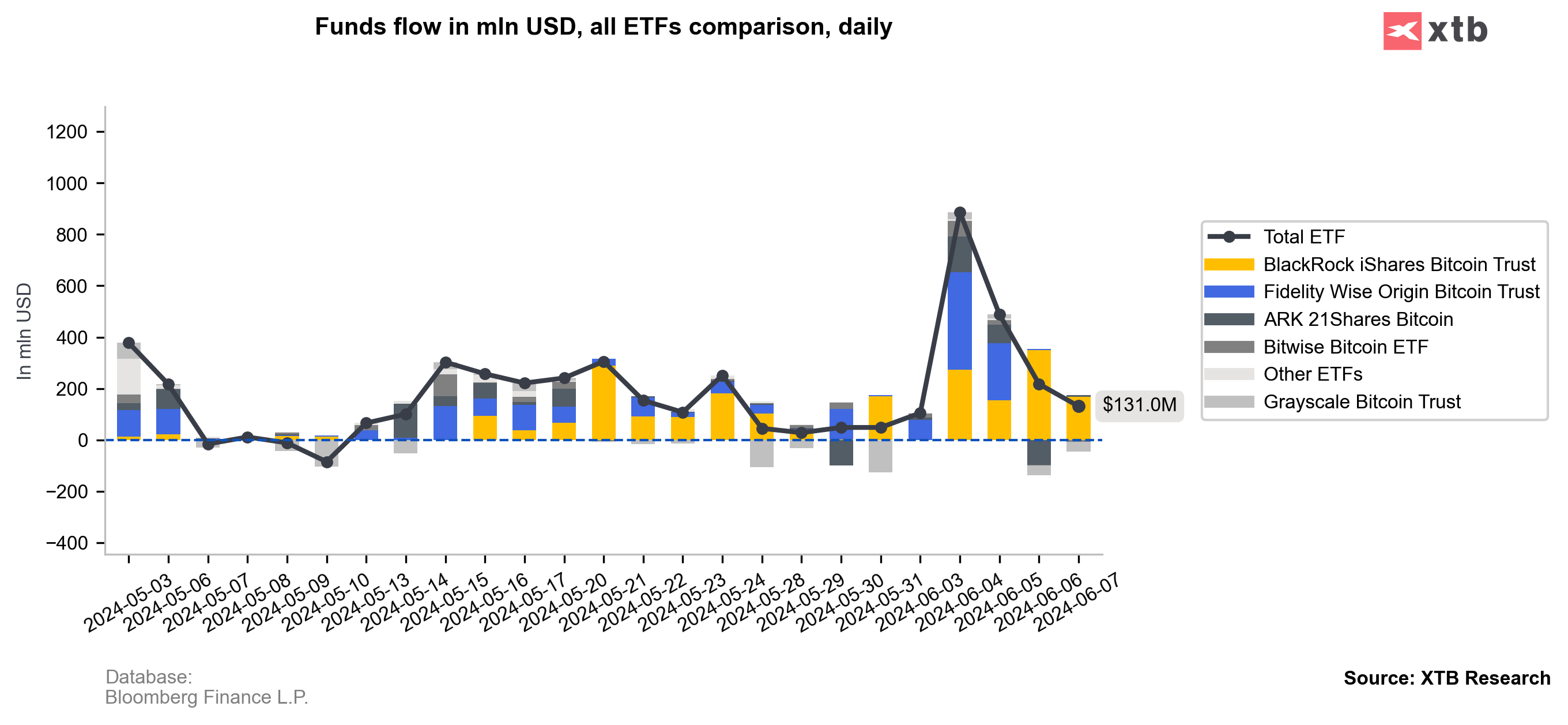 ETF inflows (updated through June 7, 2024). Source: Bloomberg Finance L.P. , XTB Research