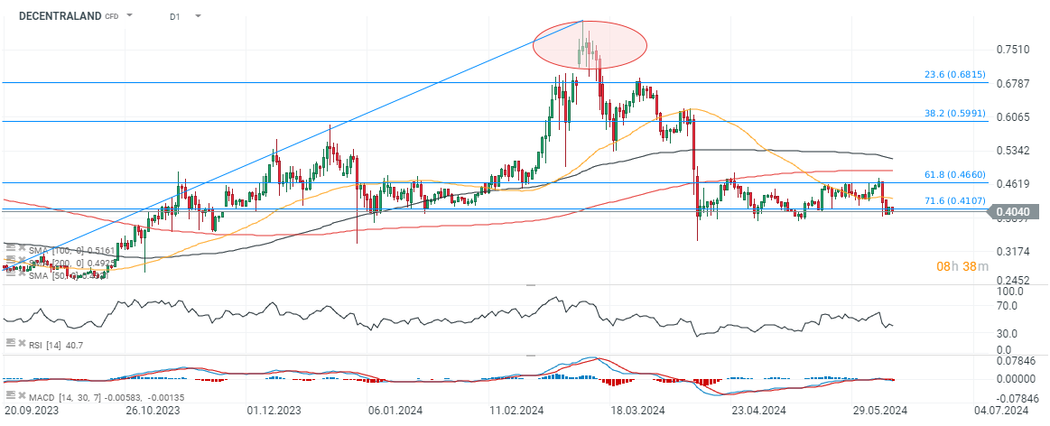 After Friday's NFP data, the price of Decentraland (MANA) settled below the 50-day moving average (yellow line) and now bulls are struggling to get back above the 71.6 Fibonacci retracement of the 2023 upward wave at $0.41.