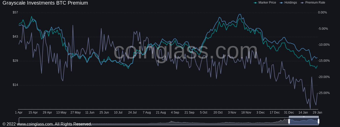 Last week saw GBTC trade at its biggest ever discount relative to the Bitcoin spot price. Source: Coinglass