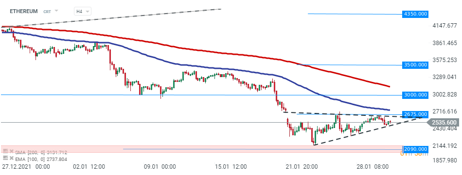 ETHEREUM price is approaching the lower limit of the triangle formation. Should break lower occur, the next target for sellers is located at $2090. Source: xStation5