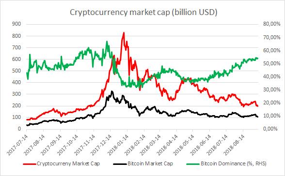 - BITCOIN share of the crypto market capitalization surpasses 55%