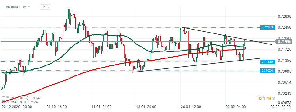 NZDUSD pair bounced off the lower limit of the triangle formation and is currently approaching its upper limit. Should a break above occur, then upward move could be extended towards resistance at 0.7248. Source: xStation5