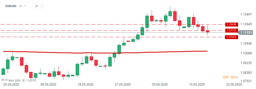 Since Tuesday, the euro lost around 1.3% against the greenback amid doubts on the feasibility of the €750 billion Recovery Fund Plan. During today’s session EURUSD broke below 1.1211 resistance. Should downbeat moods prevail, support at 1.1154 may come into play. Source: xStation5