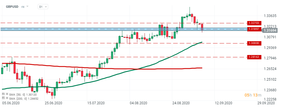 GBPUSD – British pound was one of the worst performing currencies during today’s session. Cable broke below the 1.3189 support level due to uncertainties regarding Brexit trade deal. If sellers will manage to uphold momentum, then next support at 1.30 may be at risk. On the other hand, if buyers will regain control, the nearest resistance lies at the 1.3270. Source: xStation5
