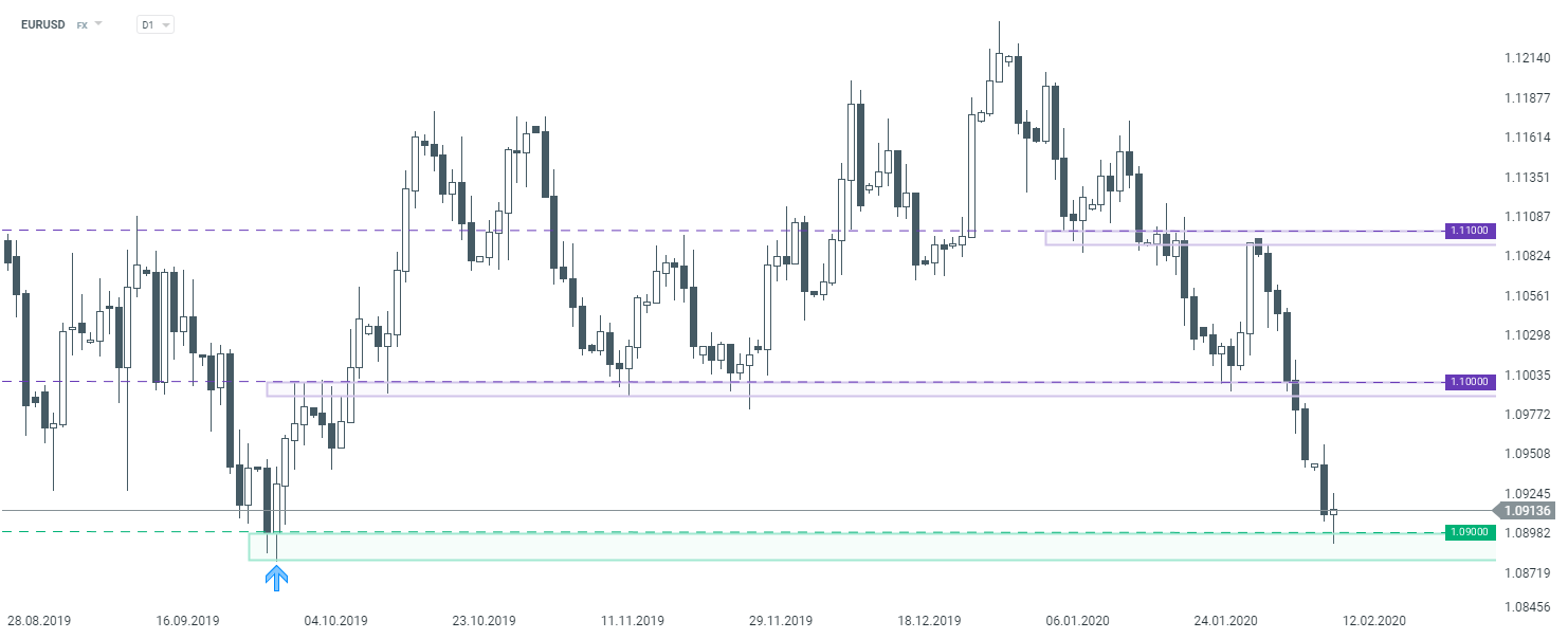 Today EUR/USD broke below the 1.0900 support level, which was the lowest level since September 2019. Source: xStation5