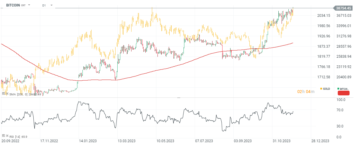 Bitcoin as well as GOLD reach today new, yearly highs. Source: xStation5