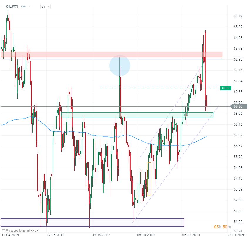 A perception of Middle East de-escalation has really been a massive hit for OIL.WTI. Bulls are now trying to at least defend the $59 support zone. Source: xStation5