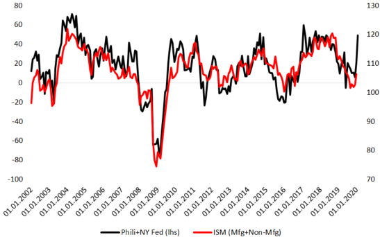 Miraculous recovery? The East Coast activity data does look very good. Source: Macrobond, XTB Research