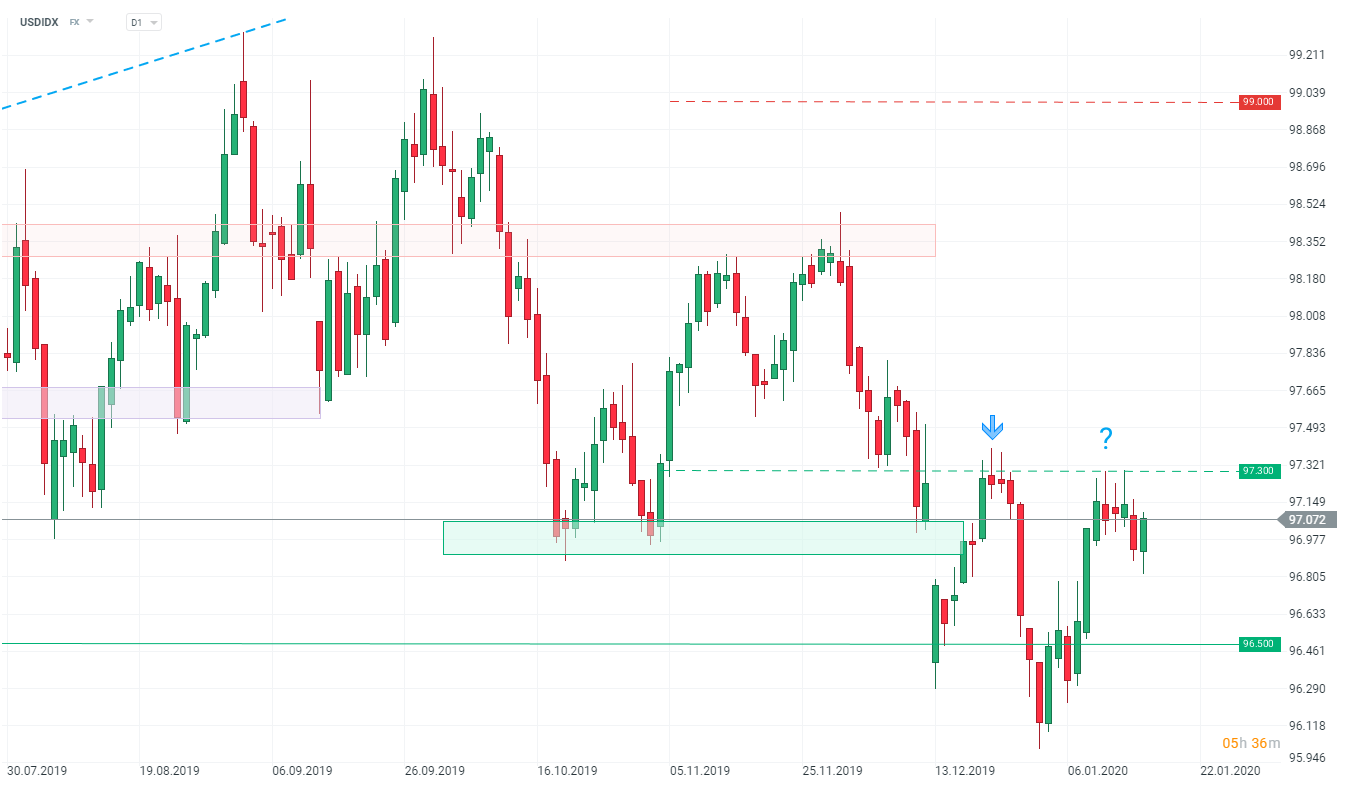 USDIDX looked well positioned to test 96.50 just yesterday but solid US data caused a recovery today. Source: xStation5
