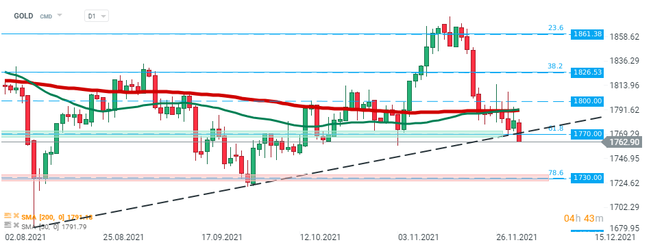 The dollar tried to move higher today together with bond yields, which pushed the gold price lower to the region of $ 1,763. Many US bankers believe the pace of the tapering process should be increased, which would in turn allow earlier rate hikes. If the NFP report surprises positively tomorrow, it seems certain that the tapering process will be accelerated.