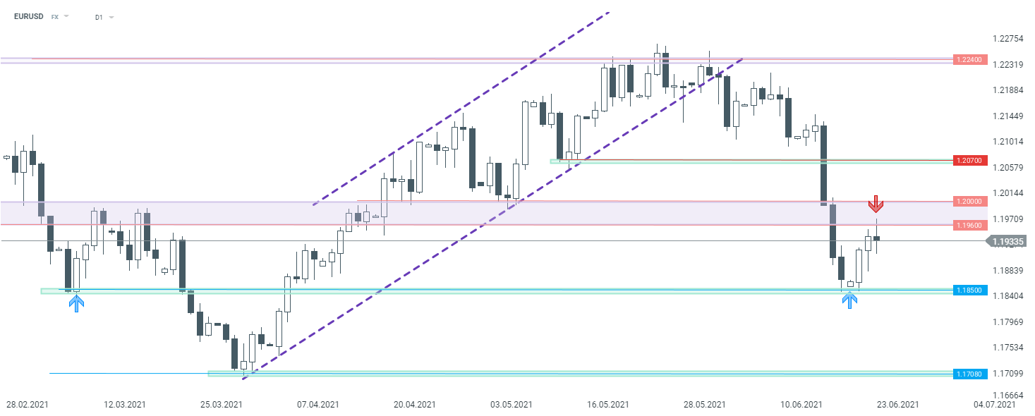 Looking at the main currency pair - EURUSD, from a technical point of view, today the upward move continued. However, the pair reached the resistance zone around 1.1960 - 1.2000, where sellers reappeared. If buyers fail to break above this zone, a continuation of the downward movement should be expected. The zone around 1.1850 remains the key support. Source: xStation5