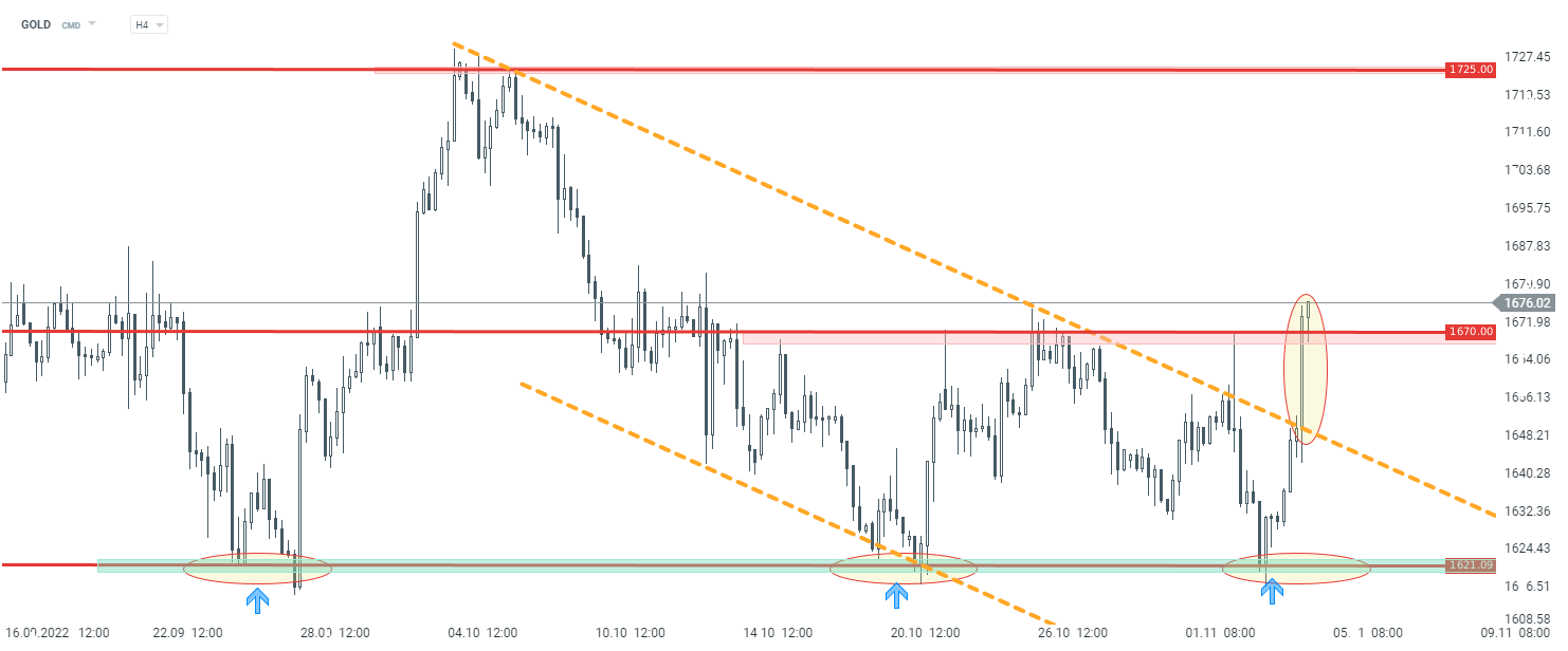 Precious metals recorded heavy gains today amid a weaker dollar. Following the release of the US jobs report GOLD broke above the upper limit of the descending channel, and later in the session buyers pushed the price above the horizontal resistance zone at $ 1670, which may herald a continuation of the upward movement after the weekend. Source: xStation5