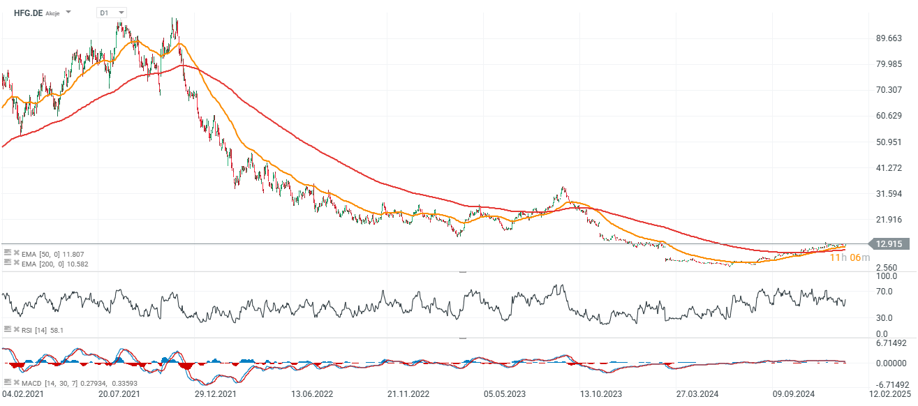 - HelloFresh (HFG.DE) shares are back above the EMA200 and attempting to reverse the uptrend.