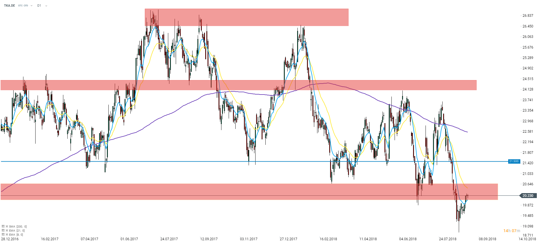 Thyssenkrupp (TKA.DE) is still running its business without dedicated leadership after departures of both CEO and Chairman earlier this summer. Guido Kerkhoff is said to serve as an interim CEO until Supervisory Board proposes a candidate for this post. According to the Platow newspaper, such a candidate may have been already found. Namely, Marcus Schenck, a former deputy CEO of the Deutsche Bank, is said to be high on the list of potential candidates. While Schenck definitely has some experience in running a company rumours surface that such proposition may face strong opposition from the labor unions. Do notice that the position of labor unions within the Thyssenkrupp is considerable.
