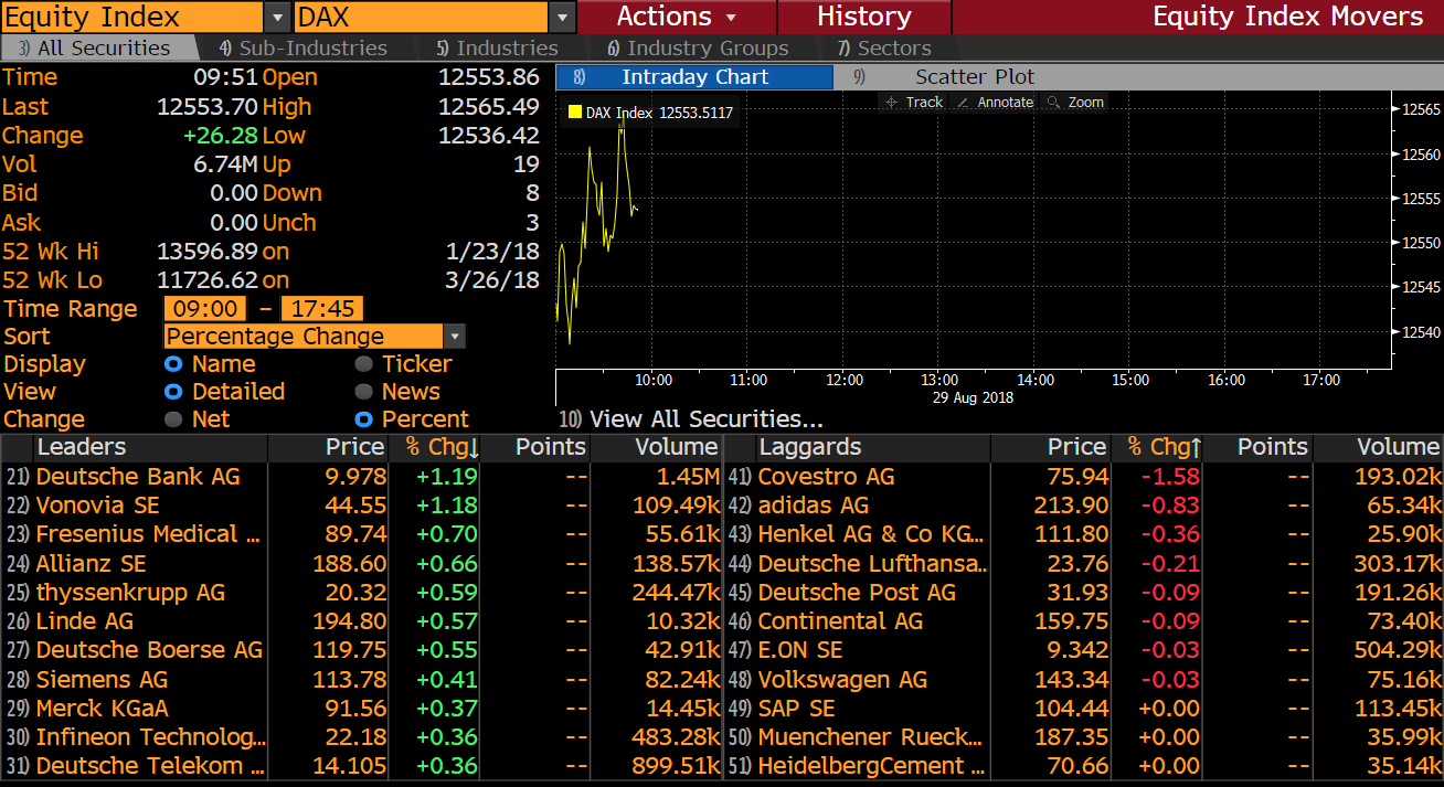 The German DAX components are generally trading higher after the first hour of trade. Source: xStation5