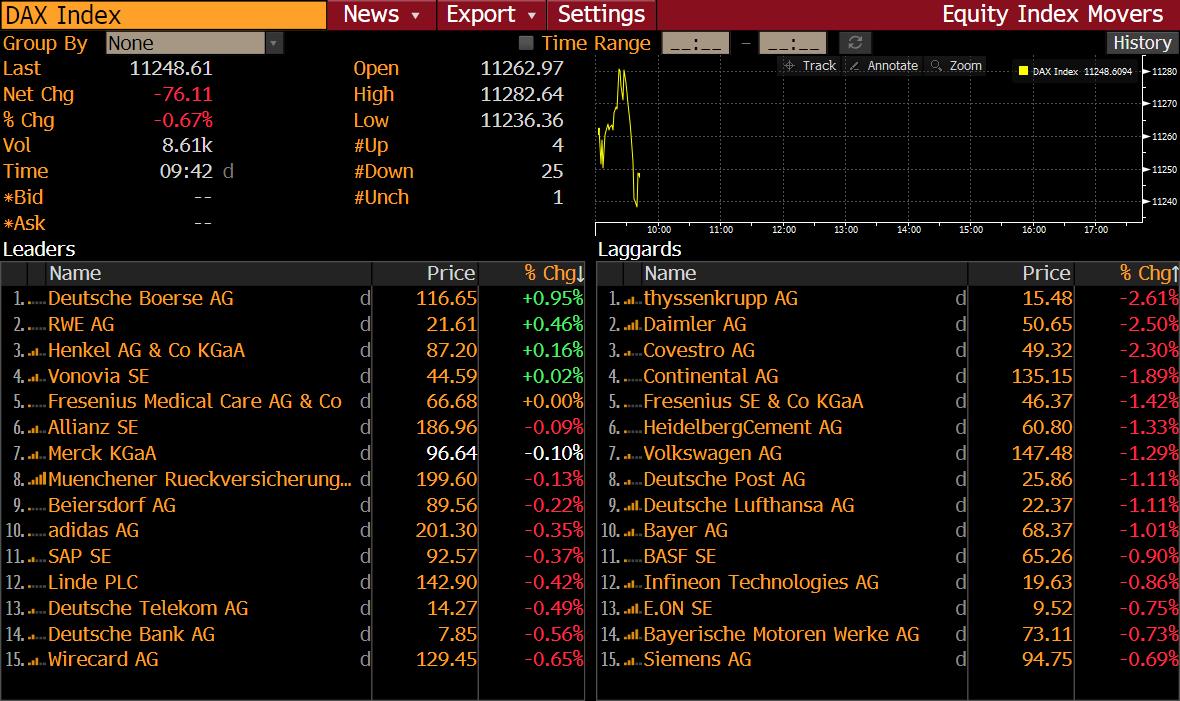 Most of the DAX members is trading lower at the beginning of Thursday’s session. Source: Bloomberg