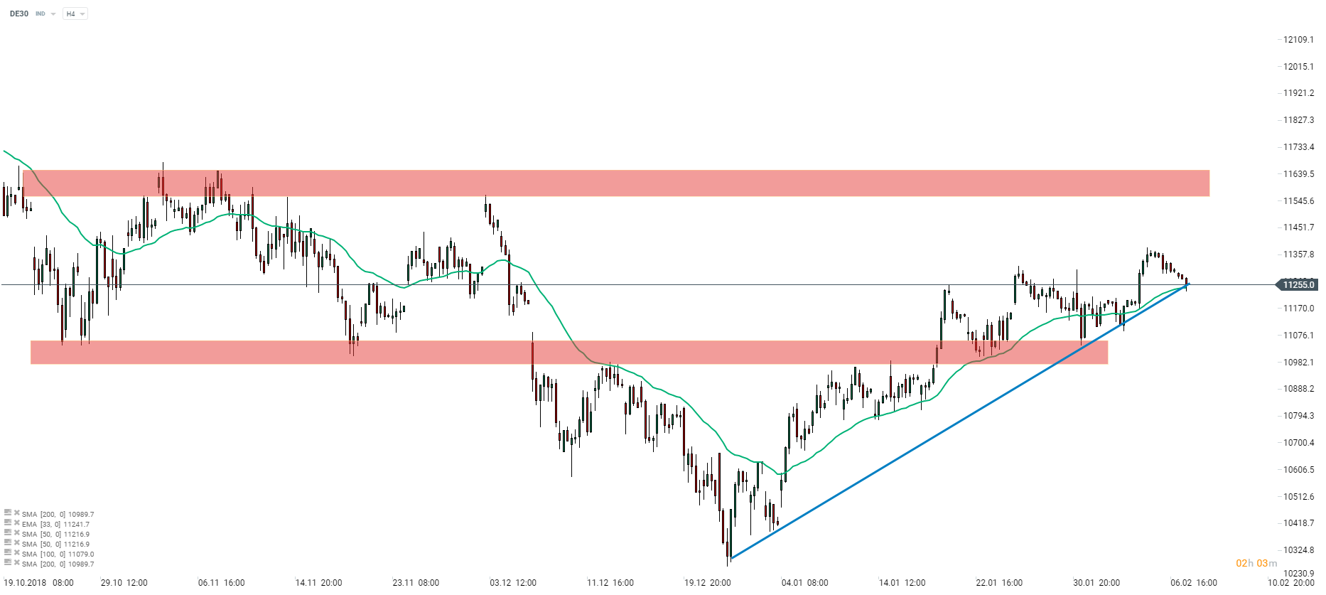 DAX (DE30 on xStation5) tests trendline and moving average