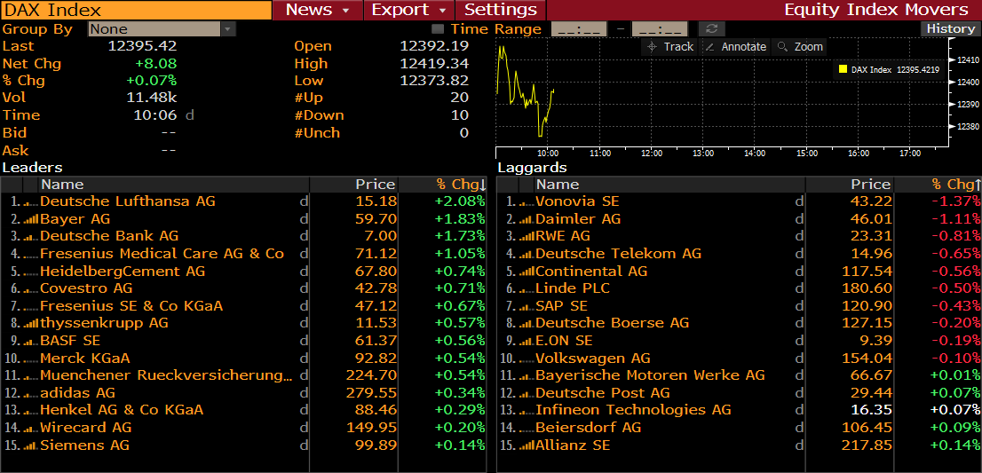 DAX members at 9:06 am BST. Source: Bloomberg