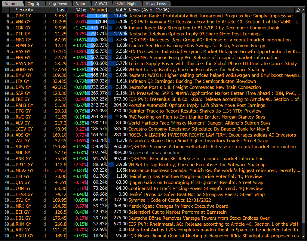 Major percentage changes and information from individual companies in the DAX index. Source: Bloomberg