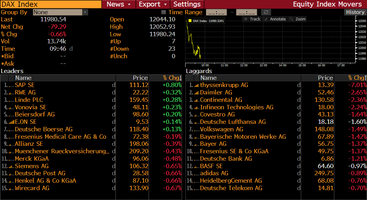 DAX members following the first 46 minutes of trade. Source: Bloomberg