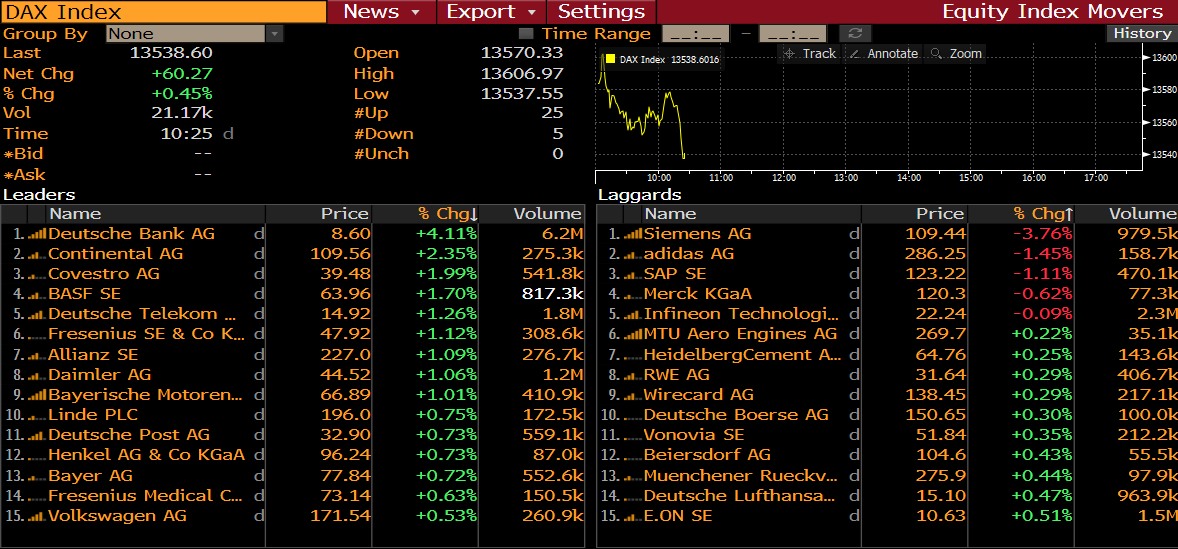 DAX members at 9:25 am GMT. Source: Bloomberg