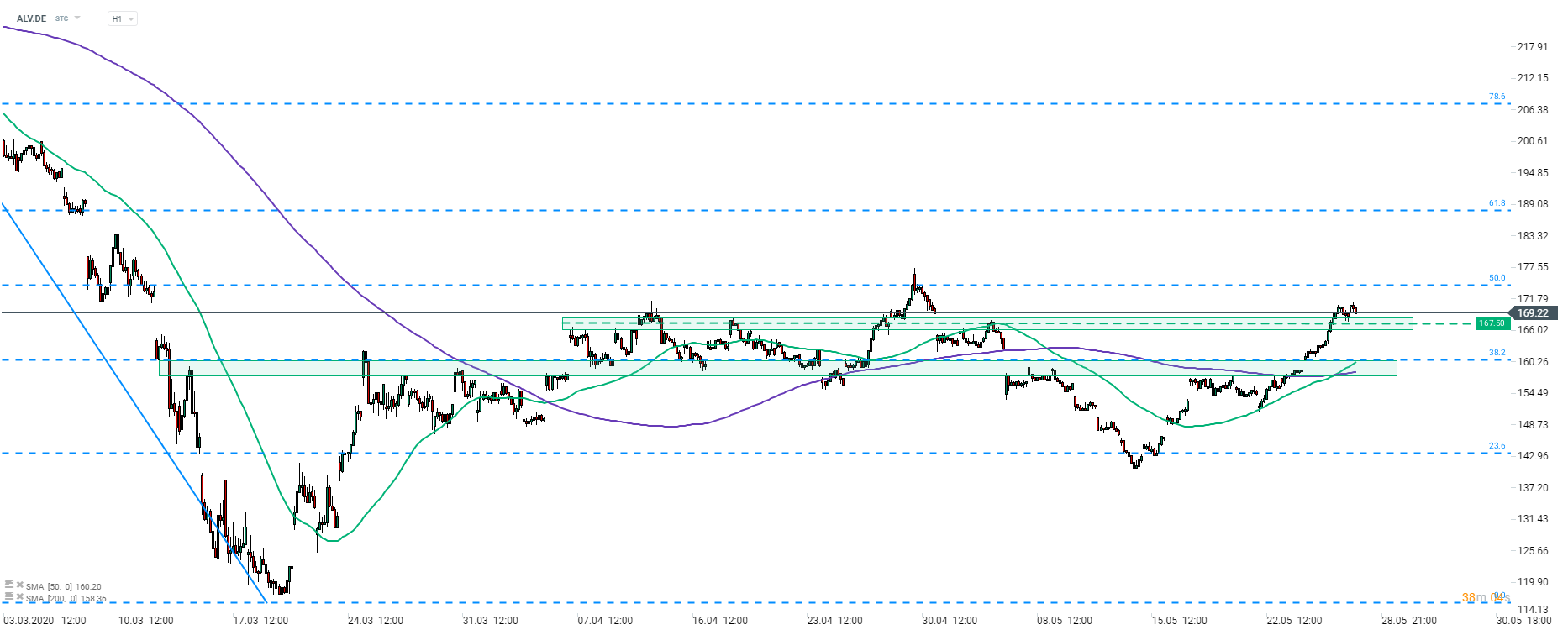 Allianz (ALV.DE) is pushing higher today. The stock broke above €167.50 price zone yesterday and made a retest of the zone later one. Near-term resistance can be found in the €175 area (50% retracement of the February-March sell-off). Source: xStation5