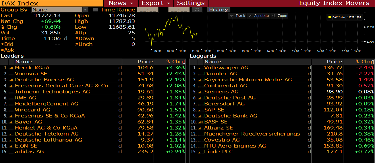 DAX members at 10:06 am BST. Source: Bloomberg