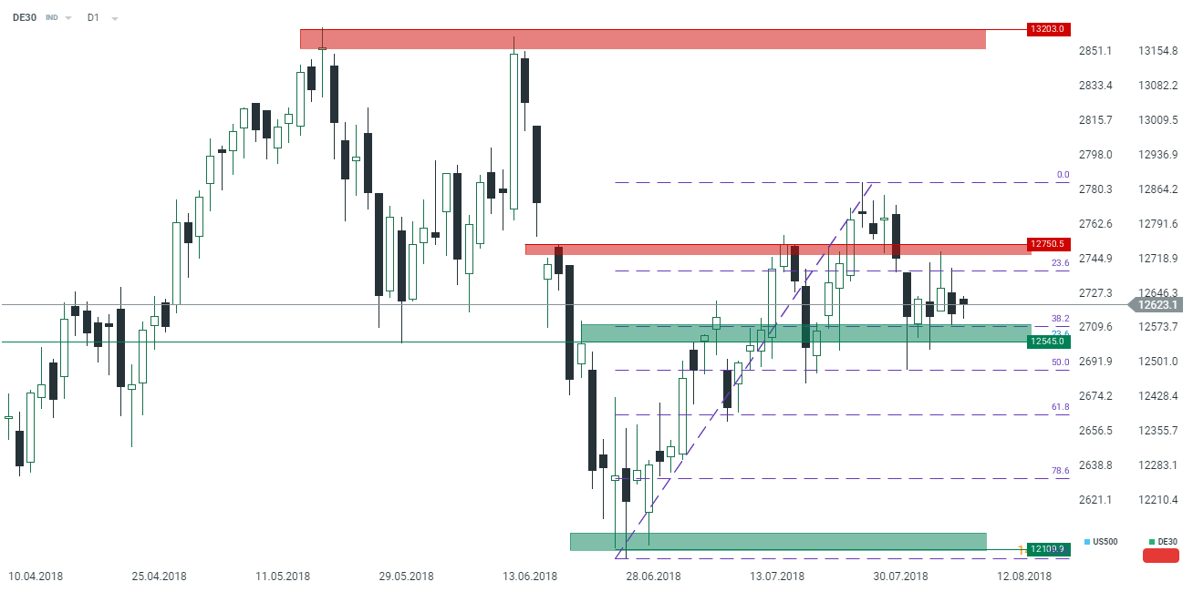 The German stock market keeps moving within the consolidation, hence 12545 and 12750 levels remain the most crucial to watch. Source: xStation5