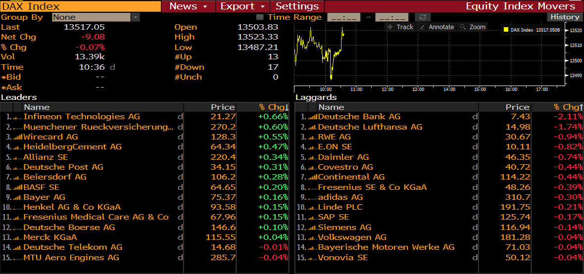 DAX members at 9:36 am GMT. Source: Bloomberg